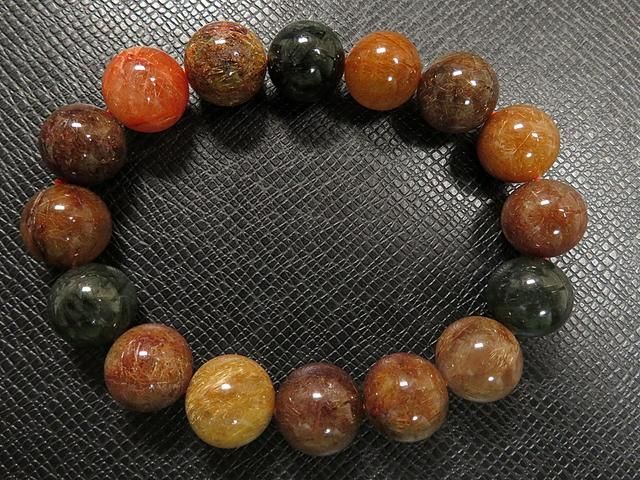 g360円★【ミックスルチル】水晶ブレスレットM★13mm:G-40796