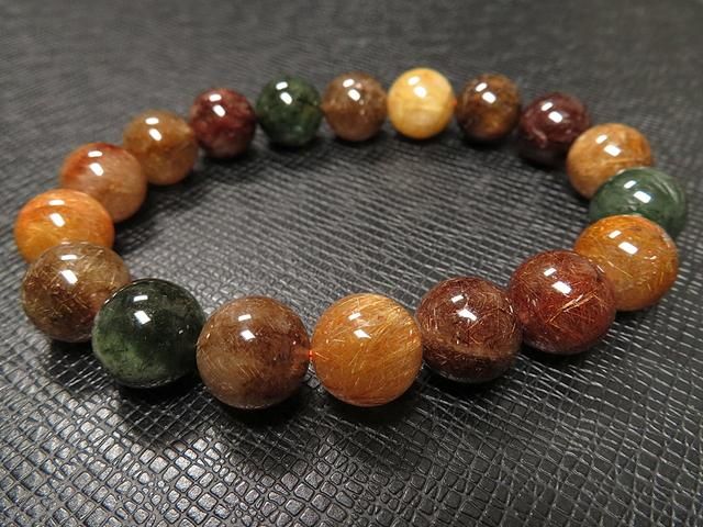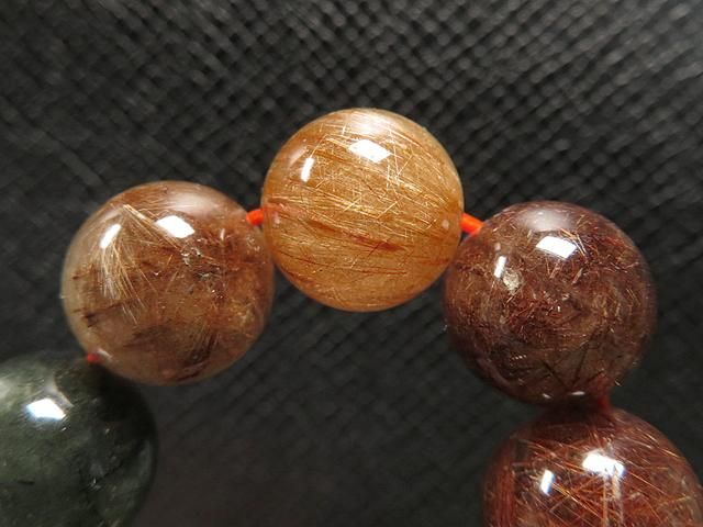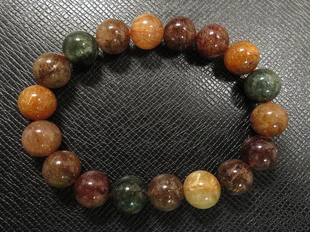 g360円★【ミックスルチル】水晶ブレスレットM★11.5mm:G-40792