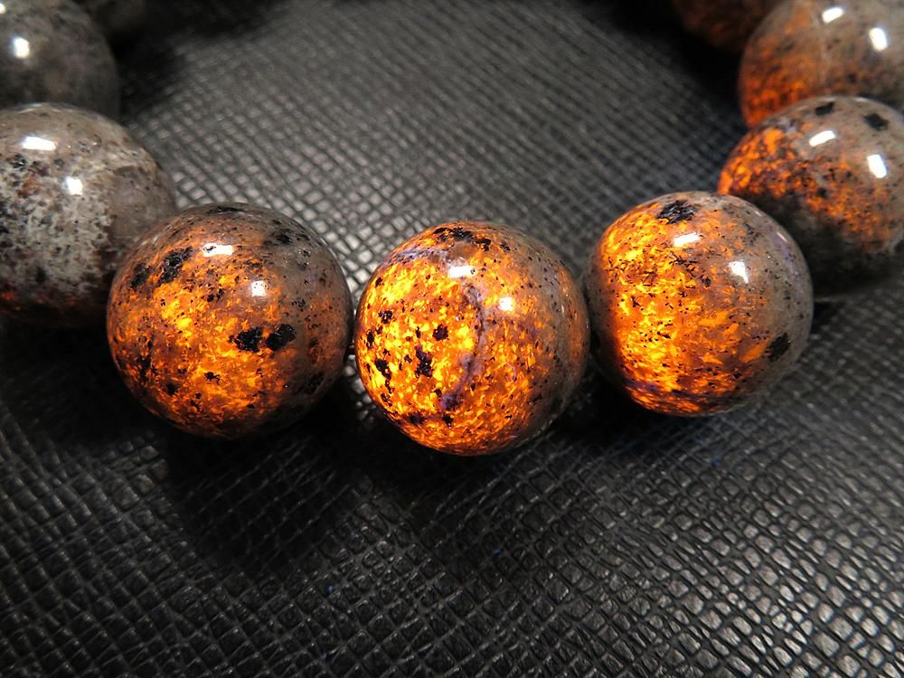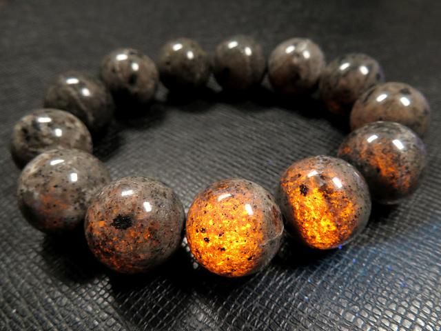 詳細:強い紫外線(ブラックライト)の下でマグマの様な輝きを放つ稀少なユーパーライトを使用した大粒パワーストーンブレスレットです。