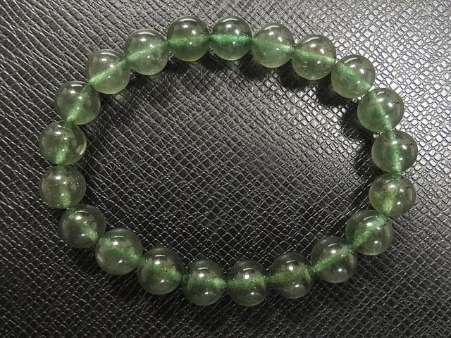 詳細:幾重にも重なるグリーンファントムの層が水晶をグリーンに染めあげるほどびっしり入ったとても美しいブレスレットです。