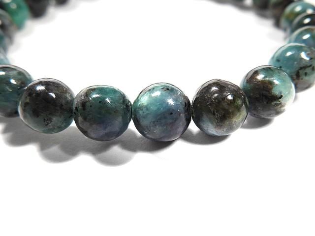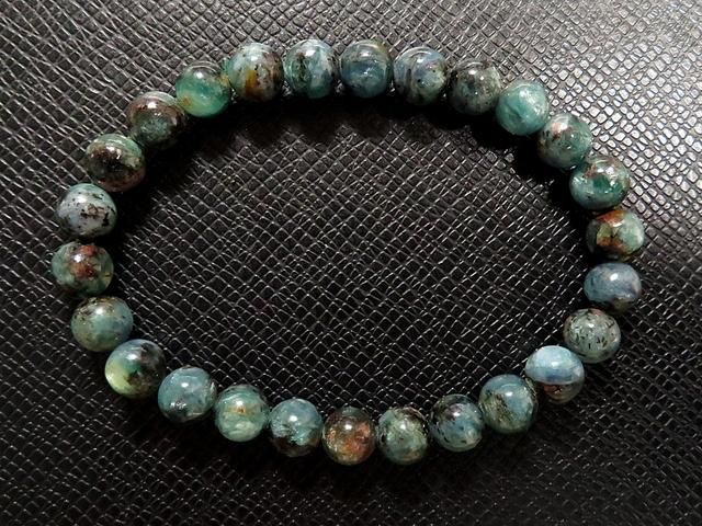 詳細:カイヤナイトにフックサイトと呼ばれる緑色の鉱物が含まれており光に照らすとブルーグリーンの輝きを放つ美しい天然石ブレスレットです。